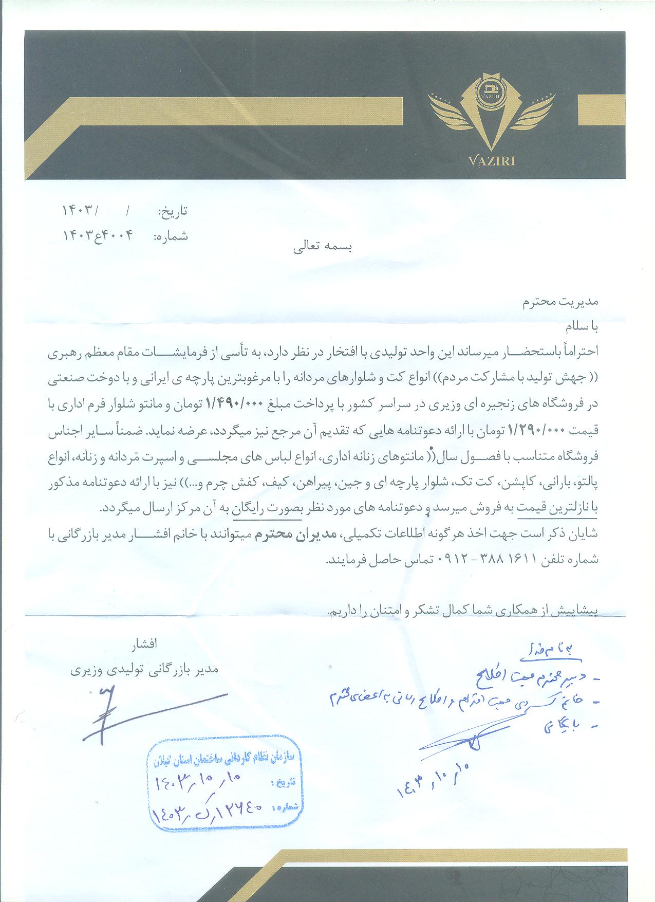کارت تخفيف فروشگاه پوشاک وزيري