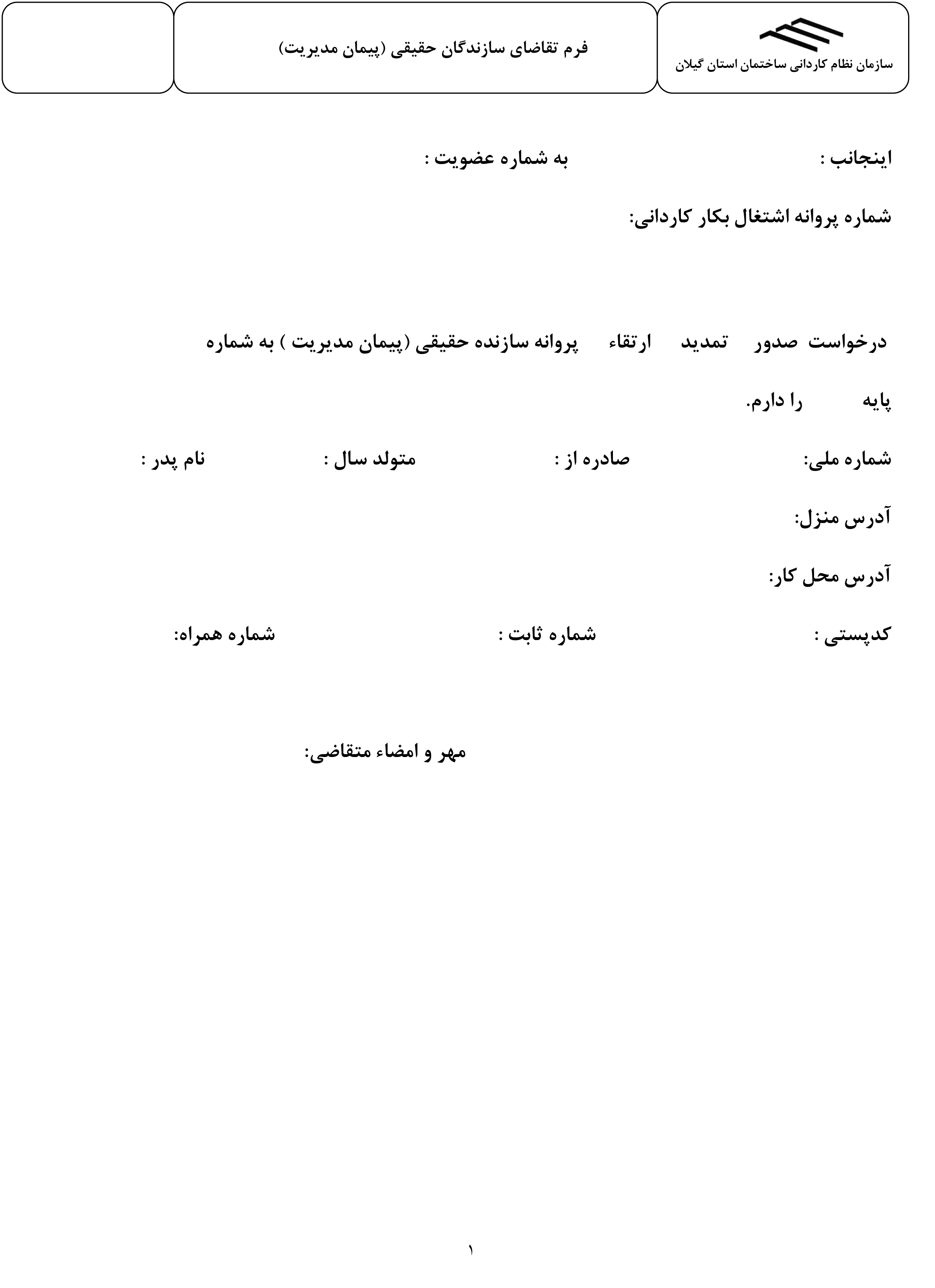 فرم تقاضای سازندگان مسکن و ساختمان حقیقی مجری
